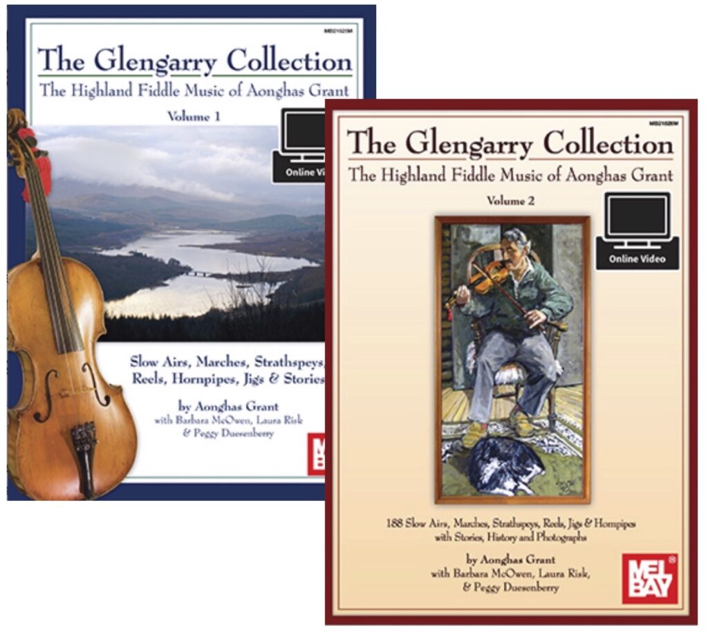 I had the great honor of collaborating with renowned Scottish Highland fiddler Aonghas Grant, fiddler Barbara McOwen and ethnomusicologist Peggy Duesenberry on the two-volume Glengarry Collection: The Highland Fiddle Music of Aonghas Grant. The collection focuses on the core of Aonghas’ music: Highland fiddling, and its connections to pipe tunes and Gaelic songs. There are also a number of tunes composed by Aonghas or in his honour. In total, the books contain 352 slow airs, marches, strathspeys, reels, jigs and hornpipes, with accompanying stories, history and photographs. Transcriptions of bowings and grace notes provide insight into Aonghas’ playing style. The accompanying DVDs include recordings of Grant’s impromptu and passionate performances of 142 of the tunes. Both Volume 1 and Volume 2 are available online from Mel Bay. For more about Aonghas Grant, see his website.